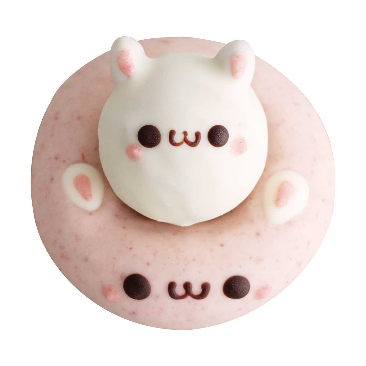 ベースはプレーンドーナツ、色付けはホワイトチョコレートに有機抹茶やかぼちゃパウダー、いちごパウダーなど、自然のものを。そして、耳は有機アーモンド。カリッとするまで煎ったものを使用しています。